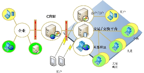 企業(yè)的社區(qū)營銷架構不僅僅是在構建一個網(wǎng)絡社區(qū),而是圍繞企業(yè)的應用充分結合起來,包括企業(yè)的CRM系統(tǒng)、消費者門戶、社區(qū)以及交易交換平臺等。如圖所示: