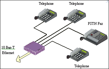 以太網相連,可支持兩個標準的電話終端進行呼叫。
