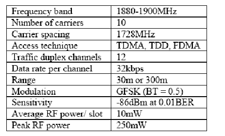 表1:DECT的基本特征