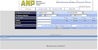 在圖6所示的系統(tǒng)狀態(tài)頁面中,大家可看到有“”Reboot和“Shutdown”按鈕排列在下部,在你運行AAH的機器離控制計算機很遠的時候這個功能很管用。報告標簽(圖7)看上去非常簡單,只有四個類別:呼叫記錄、比較記錄、月流量和日負荷,在這些報告中有些內(nèi)容顯示不全,但系統(tǒng)又不讓你來調(diào)整數(shù)據(jù)的寬度范圍。