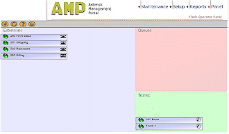 面板標簽(圖8)是一個由Flash建立的操作面板,它包含有不同的extensions、隊列和中斷,并可允許你來查看誰在使用這個系統(tǒng),還可轉(zhuǎn)移呼叫、掛斷線路并可通過面板來建立電話會議。