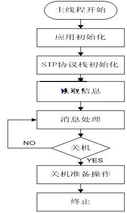 系統(tǒng)軟件是基于SIP協(xié)議棧的基礎(chǔ)上實現(xiàn)的。由于SIP協(xié)議棧采用模塊化設(shè)計思想,因此,系統(tǒng)軟件可以直接調(diào)用協(xié)議棧各模塊提供的API。軟件應(yīng)用模塊的消息獲取線程是實時獲取協(xié)議棧處理的結(jié)果(以消息或事件的形式存儲在協(xié)議棧消息隊列中),并把它轉(zhuǎn)換成系統(tǒng)應(yīng)用的消息結(jié)構(gòu)存放在應(yīng)用模塊的消息隊列中。圖2是軟件應(yīng)用模塊的程序流程圖。