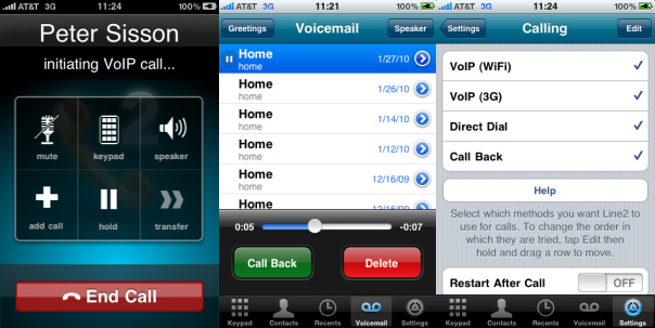一家來(lái)自舊金山的VoIP廠商公布了一款iPhone上運(yùn)行的VoIP應(yīng)用,Line2.這款僅售99美分的程序可以讓你在Wi-Fi與3G網(wǎng)絡(luò)上撥打VoIP電話,只要每月14.95美元,您就可以隨意通過(guò)這款網(wǎng)絡(luò)電話撥打美國(guó)和加拿大,這一切只需要您有3G或者Wi-Fi信號(hào)即可。