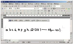 安裝成功后,你會從圖16中看到一個手寫圖標(biāo),接下來我們就可以使用手寫識別功能啦。首先,你必須在屏幕上選定書寫區(qū)域,可以是屏幕上類似于筆記本橫格紙的輸入板,也可以在屏幕上任意的位置書寫。我們可通過使用手寫輸入設(shè)備或移動鼠標(biāo)墊上的鼠標(biāo)來形成文字,從而完成書寫,手寫文字將被自動識別,并輸入到程序的插入點處。就像通常在紙張表面上一樣,你可以使用草書、印刷體或二者兼而有之地進(jìn)行書寫,書寫時不必每寫完一個字母后作停頓,可輸入整個單詞并在單詞之間留出空格。