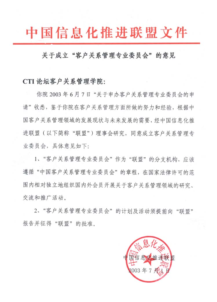 近日,由中國移動(dòng)、中國網(wǎng)通、中國聯(lián)通、海爾集團(tuán)、聯(lián)想集團(tuán)、摩托羅拉、微軟、CTI論壇等20多家單位發(fā)起籌備的"中國客戶關(guān)系管理專業(yè)委員會(huì)"(以下簡(jiǎn)稱專委會(huì)),經(jīng)信息產(chǎn)業(yè)部中國信息化推進(jìn)聯(lián)盟的批準(zhǔn),正式在京成立。