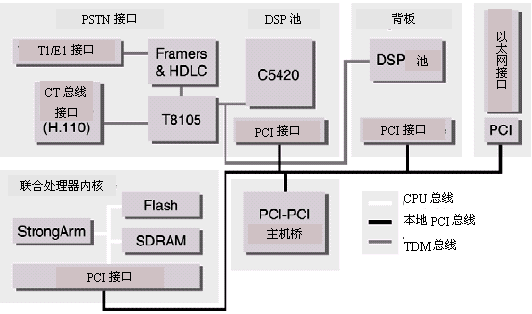 通用端口的AG系列平臺集合了以下接口或功能:電話接口,一個(gè)由眾多DSP芯片組成的板上控制器用于支持G3傳真功能,語音和DTMF處理,呼叫接續(xù),CT總線(H.100)或MVIP總線交換。AG2000(8端口環(huán)路中繼或DID,或者是它們的組合)。AG4000-T1(24-96端口),以及AG4000-E1(30-120端口)可以插在同一個(gè)PCI(或Compact PCI)插槽上。