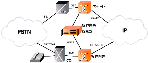IP電話技術(shù)把話音、傳真數(shù)據(jù)和IP網(wǎng)絡(luò)無縫地集合到了一起。因特網(wǎng)工程任務(wù)組(IETF)已經(jīng)建議了一個功能模型,來橋接包交換的IP網(wǎng)和電路交換的PSTN,這些橋接設(shè)備就是:信令網(wǎng)關(guān)(SG)、媒體網(wǎng)關(guān)(MG)、和媒體網(wǎng)關(guān)控制器(MGC)。(請參看圖1)。MGC通常又被叫做軟交換,正如它的名字表達(dá)的意思一樣,MGC控制著媒體從電路交換領(lǐng)域經(jīng)過媒體網(wǎng)關(guān)的網(wǎng)絡(luò)傳送到基于包的領(lǐng)域。呼叫控制消息首先送達(dá)SS7信令網(wǎng)關(guān),轉(zhuǎn)換成網(wǎng)關(guān)網(wǎng)絡(luò)中的MGCP(媒體網(wǎng)關(guān)控制協(xié)議)來控制媒體流,完成呼叫的控制、接續(xù)。話音、傳真和圖象介質(zhì)都是從PSTN交換網(wǎng)通過這些新一代的媒體網(wǎng)關(guān)連接到IP網(wǎng)的。