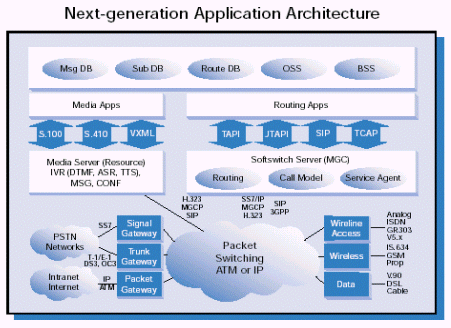 Internet一個(gè)深層次的發(fā)展是開放的Internet服務(wù)器,它給數(shù)以百萬(wàn)計(jì)的PC瀏覽器提供高級(jí)應(yīng)用程序和Internet無(wú)窮內(nèi)容的接入能力。做為重新構(gòu)建話音網(wǎng)絡(luò)的一部分,開放的軟交換--提供基于軟件的交換服務(wù)--也將會(huì)具有為數(shù)以百萬(wàn)計(jì)的無(wú)線和有線電話分送數(shù)據(jù)的能力。對(duì)于用戶來(lái)說(shuō),其結(jié)果就是他們將很容易的通過(guò)語(yǔ)音接入Internet和具有豐富的語(yǔ)音服務(wù)的環(huán)境。