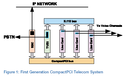 其它新業(yè)務(wù),例如IP話音(VoIP),如果要達到理想的性能,就需要電信系統(tǒng)內(nèi)部的集成,增加一塊網(wǎng)關(guān)板卡,作為附屬在CompactPCI總線和H.110總線上的外圍設(shè)備,F(xiàn)在,有了額外硬件(網(wǎng)關(guān)板卡)和VoIP的額外軟件,充分利用VoIP性能就成為可能(圖3)。