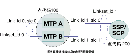 MTP A和MTP B之間的鏈路集的設(shè)置方法與任何其它SS7鏈路和鏈路集相同。如果有額外的數(shù)據(jù)設(shè)置表明此鏈路與其它連接相鄰節(jié)點(diǎn)的鏈路不同,則應(yīng)區(qū)別對待。