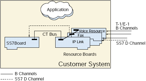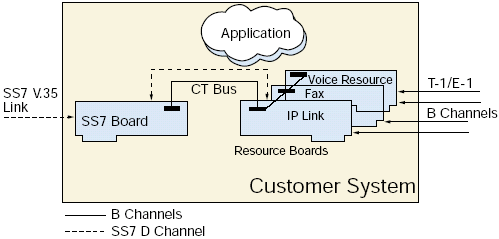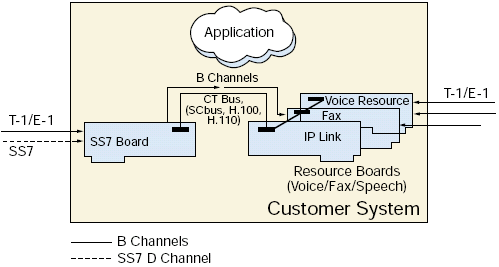 • 其它 T-1/E-1 通道被語音板卡管理,可通過CTbus路由到七號信令板卡