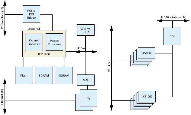 1XP1200網(wǎng)絡(luò)處理器以及Dialogic LXT1000以太網(wǎng)接口,該接口包括了對1000BaseT和100BaseTX網(wǎng)絡(luò)接口的支持。